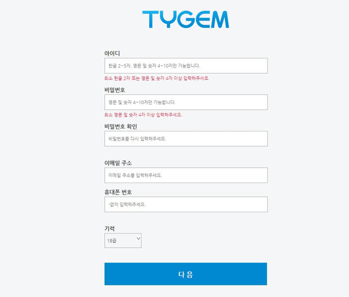 이어서 아이디, 비밀번호 등 작성을 해주시고 다음 버튼을 눌러주세요.
