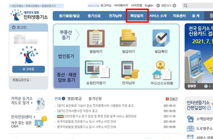 확정일자는 인터넷으로도 받을 수 있습니다. 인터넷 등기소로 접속해주시면 됩니다.